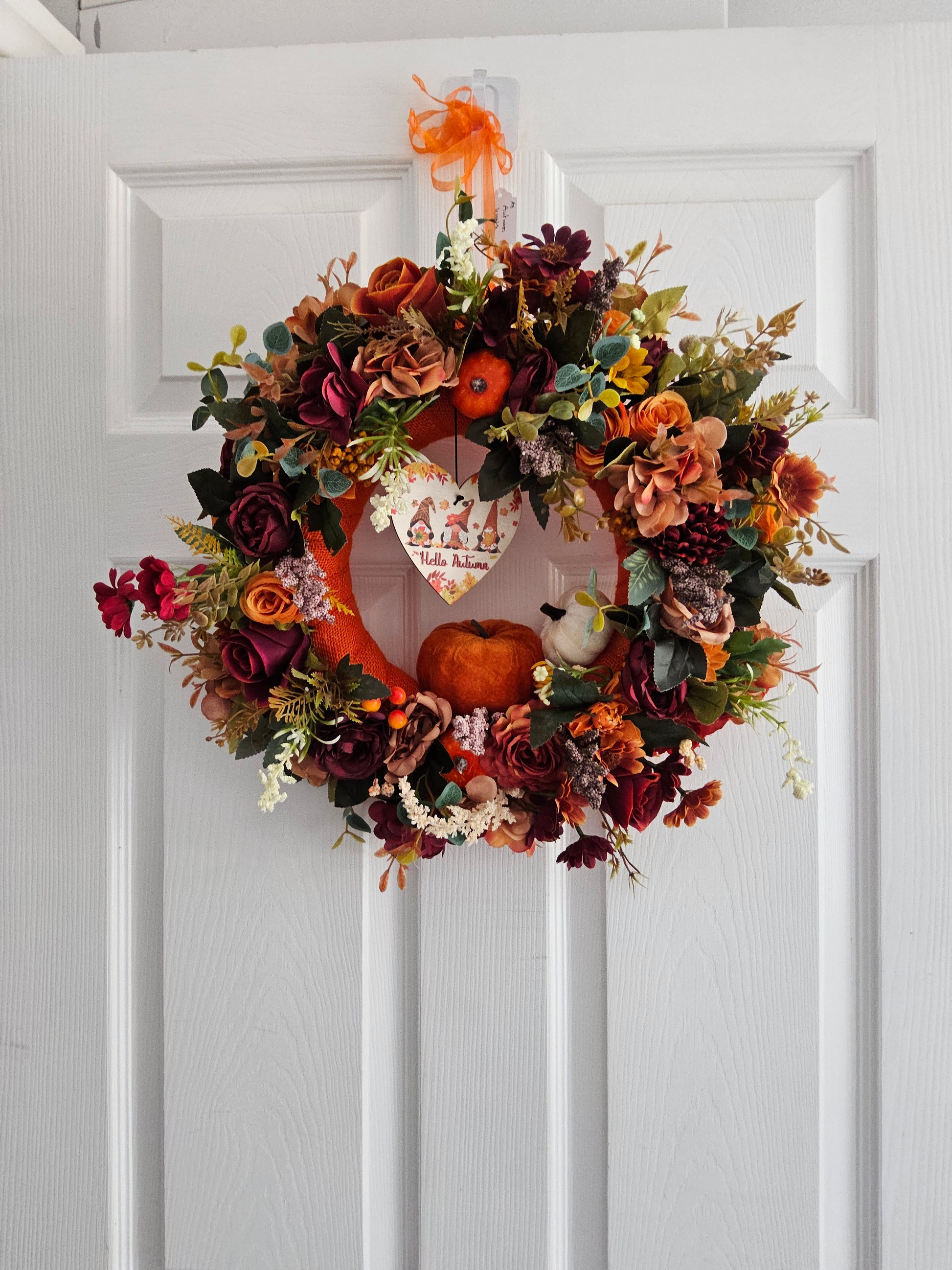Autumns Heartfelt Welcome Wreath. Handmade Faux Autumn Door Decor. (A7)