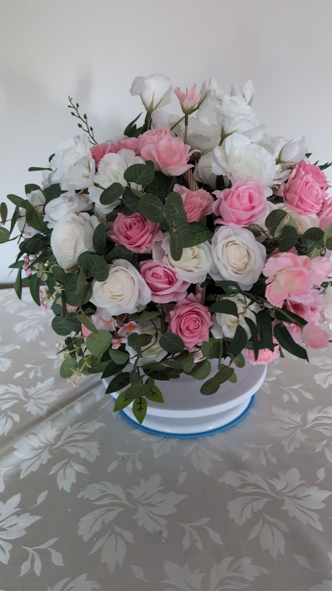 This arrangement is 44cm high and 57 cm at the widest point and has over 50 flowers displayed.